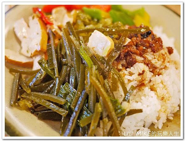 由於排骨和雞腿要現炸,所以菜飯先上。配菜有三樣,外加傳統酸菜,而白飯上頭更是淋上香濃滷肉汁,味道十分懷舊復古,很難讓人忍住不馬上吃完!!!為了怕飽足感影響品嚐主菜的心情,只好邊拍照邊慢慢吃,耐心等待排骨和雞腿的到來!!!
