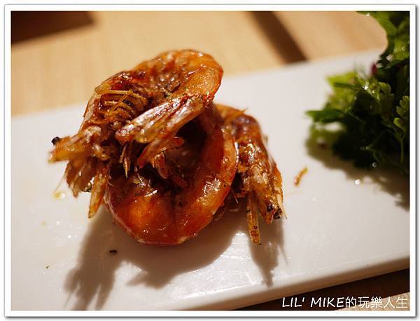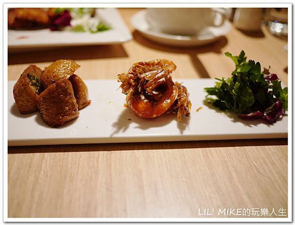 接著也是招牌開胃菜。杏鮑菇的口感與份量更是一等一。而蝦子油炸的香酥脆,且整隻皆可食用!!!