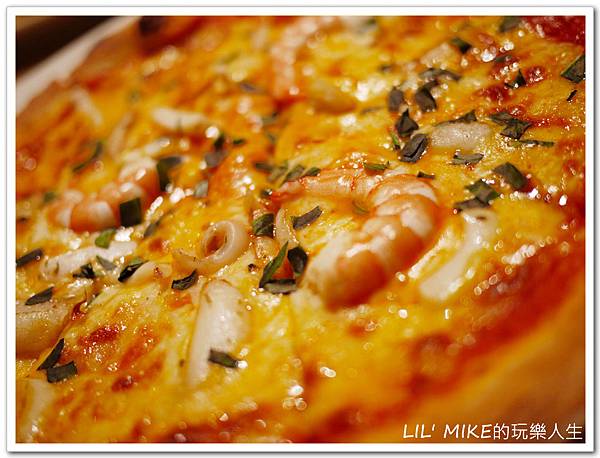 手工薄皮的義式Pizza,烘烤的相當酥脆且海鮮料的份量也很多。
