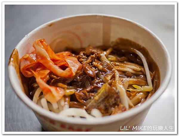 罕見的將麻醬搭配油蔥和蝦米,香氣十足且口感不油膩死鹹,據說是用三種醬料調和而成。但麵條很一般般不特別,而辣泡菜可自行取用。