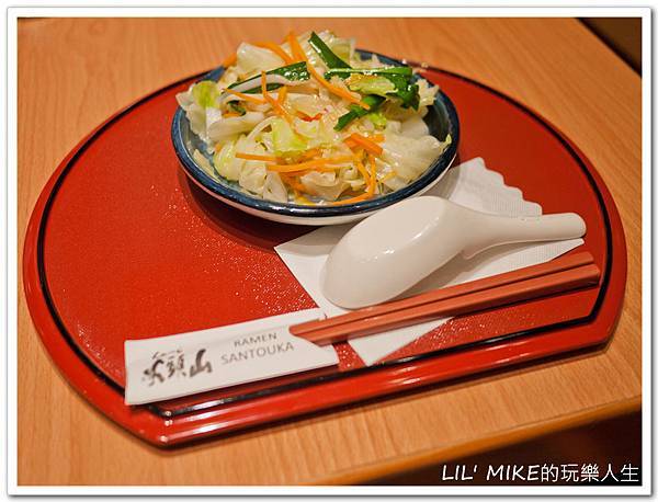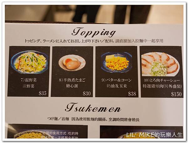 套餐有附贈半顆蛋和泡菜,Lil' Mike覺得可以省去一般的泡菜,直接把蛋放在拉麵中即可。