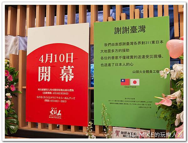 各界送來的開幕花籃,且還特地感謝台灣對於去年311地震的援助。
